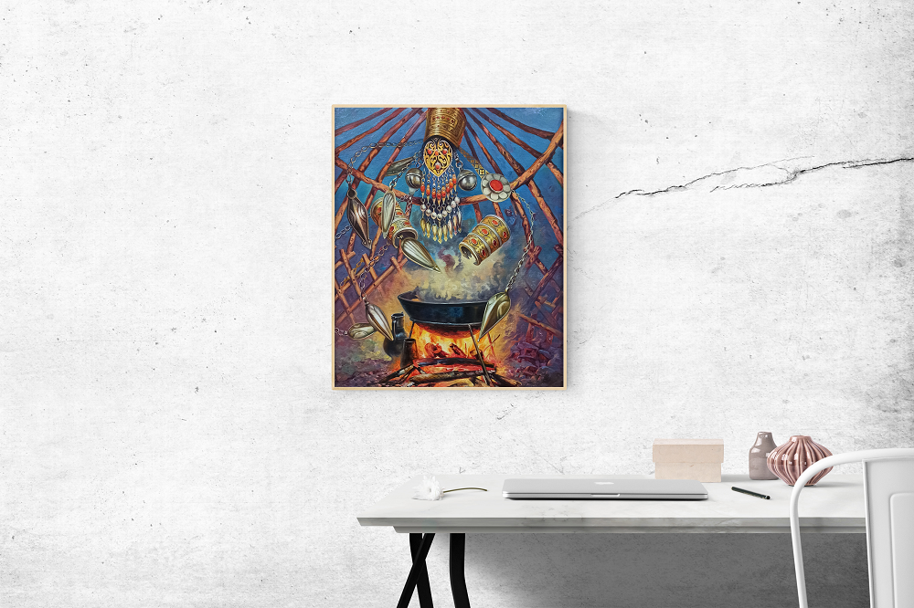 Overall, “Shayly Gelin” serves as a poignant tribute to the role of women in Turkmen culture, celebrating their strength and the importance of tradition. The painting invites viewers to reflect on themes of identity, heritage, and the invisible threads that connect us to our cultural roots.
